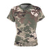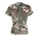 This soft, all-over printed camo tee is built for movement and everyday adventure. Lightweight polyester keeps the shirt shape-stable and quick-drying, while the tailored women’s cut and side seams create a flattering silhouette that stays put. The muted earth-tone camouflage blends into forest trails and city edges alike — wear it layered for cool mornings or solo on warm afternoons. Shoulder tape and a ribbed knit collar give subtle structure so the tee keeps its clean lines through repeat wear and wash cycles. It sits comfortably against the skin with a tagless finish and true-to-size fit, assembled in the USA from globally sourced parts.